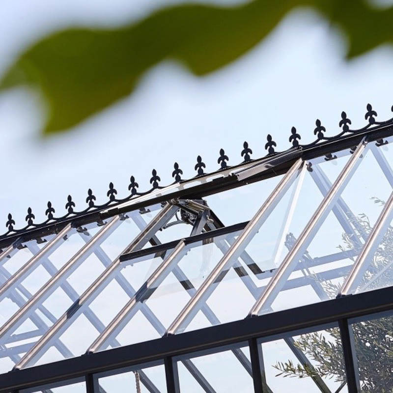 Надо понимать, что стеклянные теплицы (гринхаусы) остаются прочными, если они встроены в прочный профиль. Профиль Janssens трубчатый — весь и везде, начиная от фундамента, заканчивая профилем конька, что обеспечивает удивительную прочность в сочетании со специальными усилителями крыши, которые еще и выполняют декоративную функцию. резиновыми уплотнителями для крепления стекла в профиле.